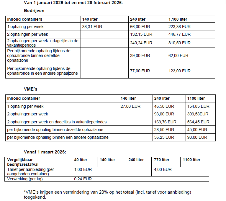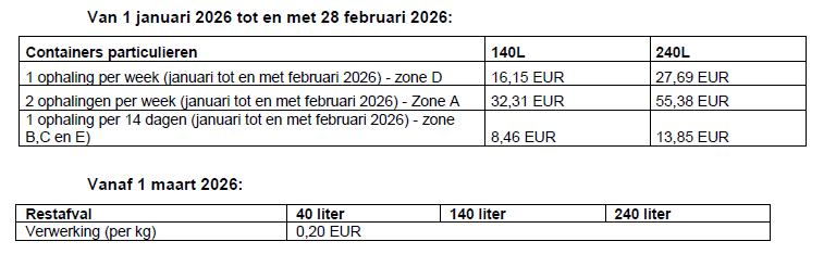 Restafval | € 0,20/kg |